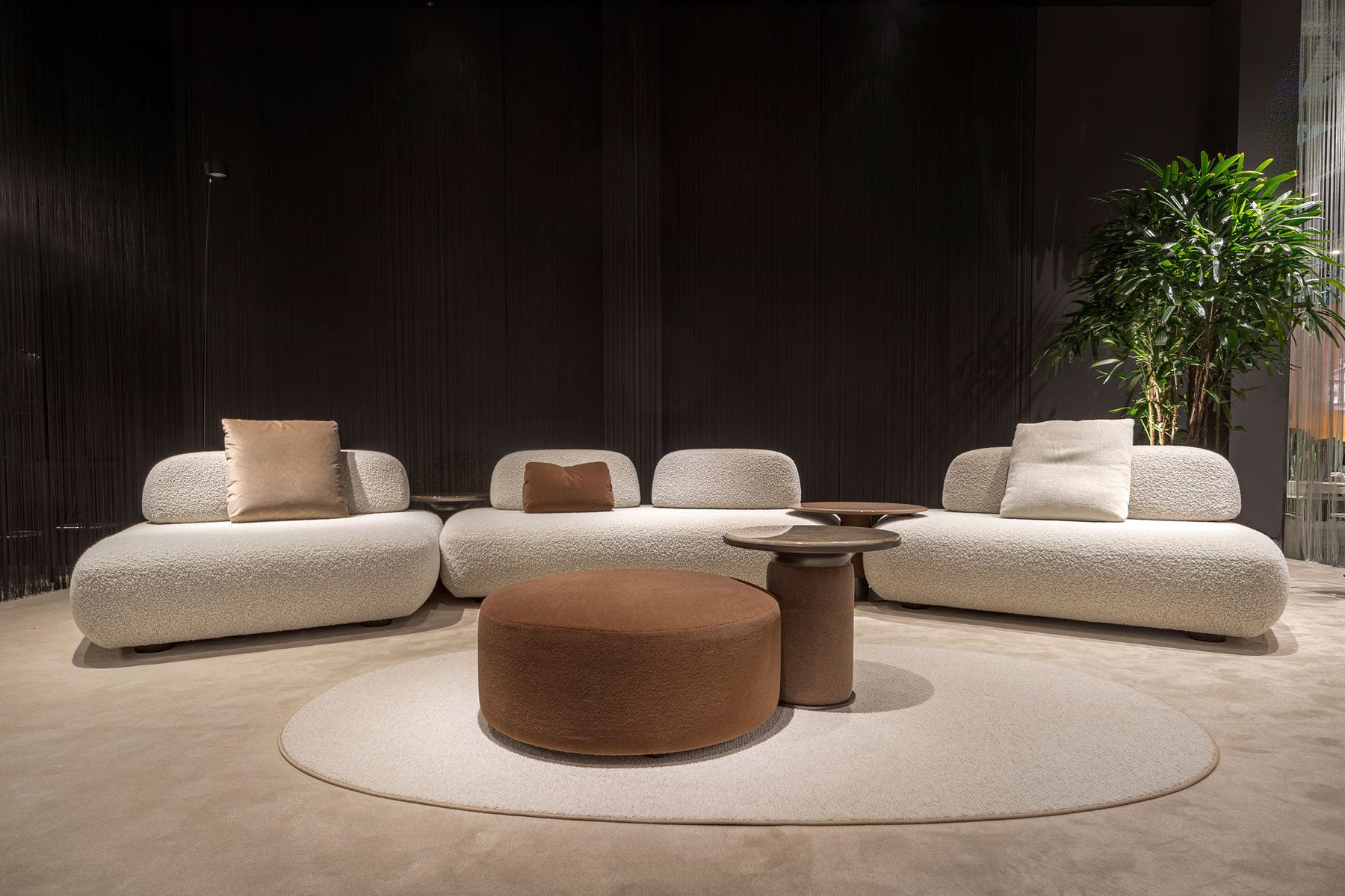 Curve sofa is a system of sofa islands characterized by shapes combined with soft, sculptural and welcoming volumes. A system of conical elements that engage in play and accompany each other in original and elegant combinations.