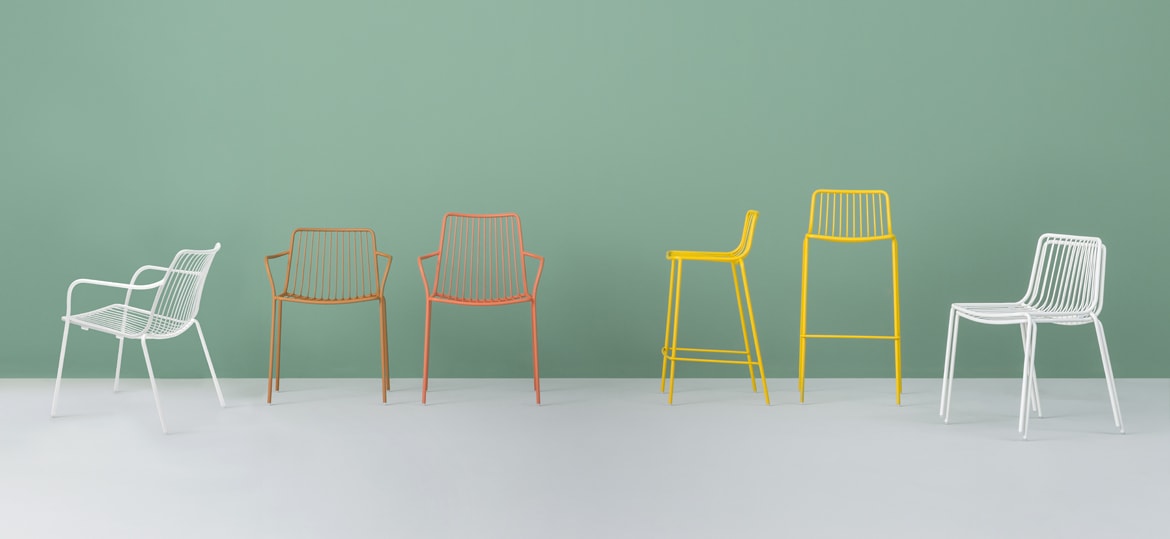 Nolita is a family of outdoor seating that recalls the beginnings of a historical path started by Mario Pedrali in 1963 with his first metal garden chairs. Stool with powder coated tubular steel frame for outdoor use.