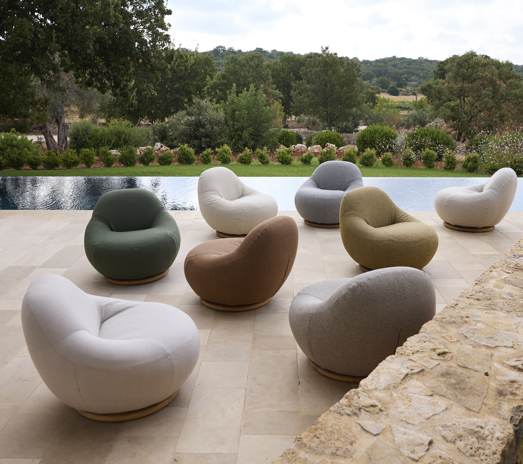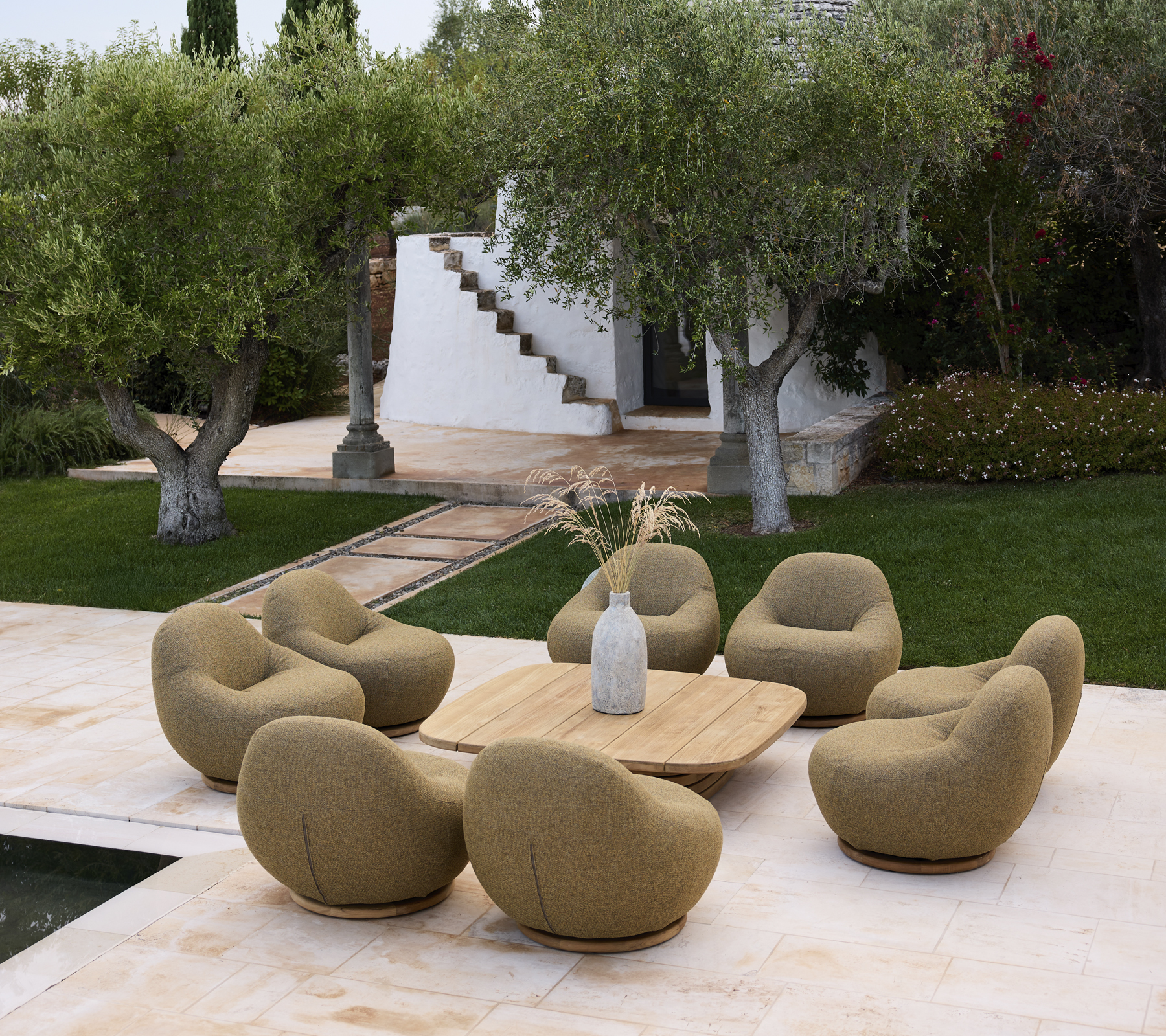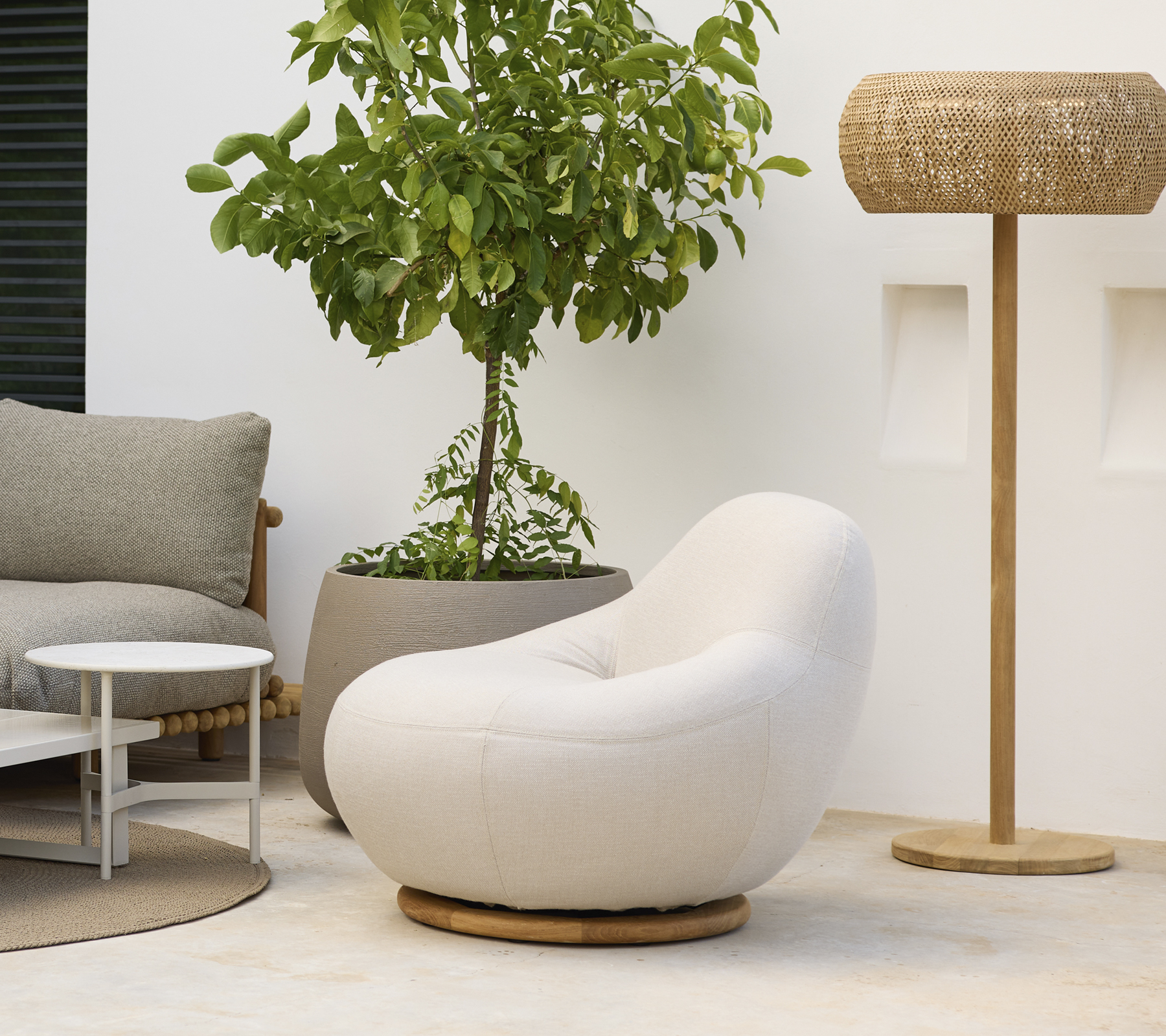Designed with a discreet 360° swivel base in teak, Gem moves with you - bringing subtle functionality to its calm, contemporary design. Its organic silhouette creates a relaxed yet elegant expression, perfectly suited to modern interiors and lounge areas.