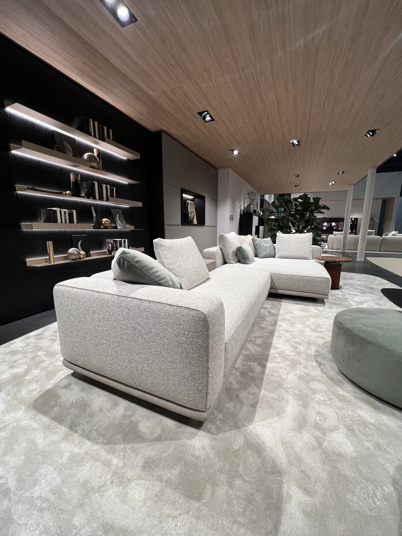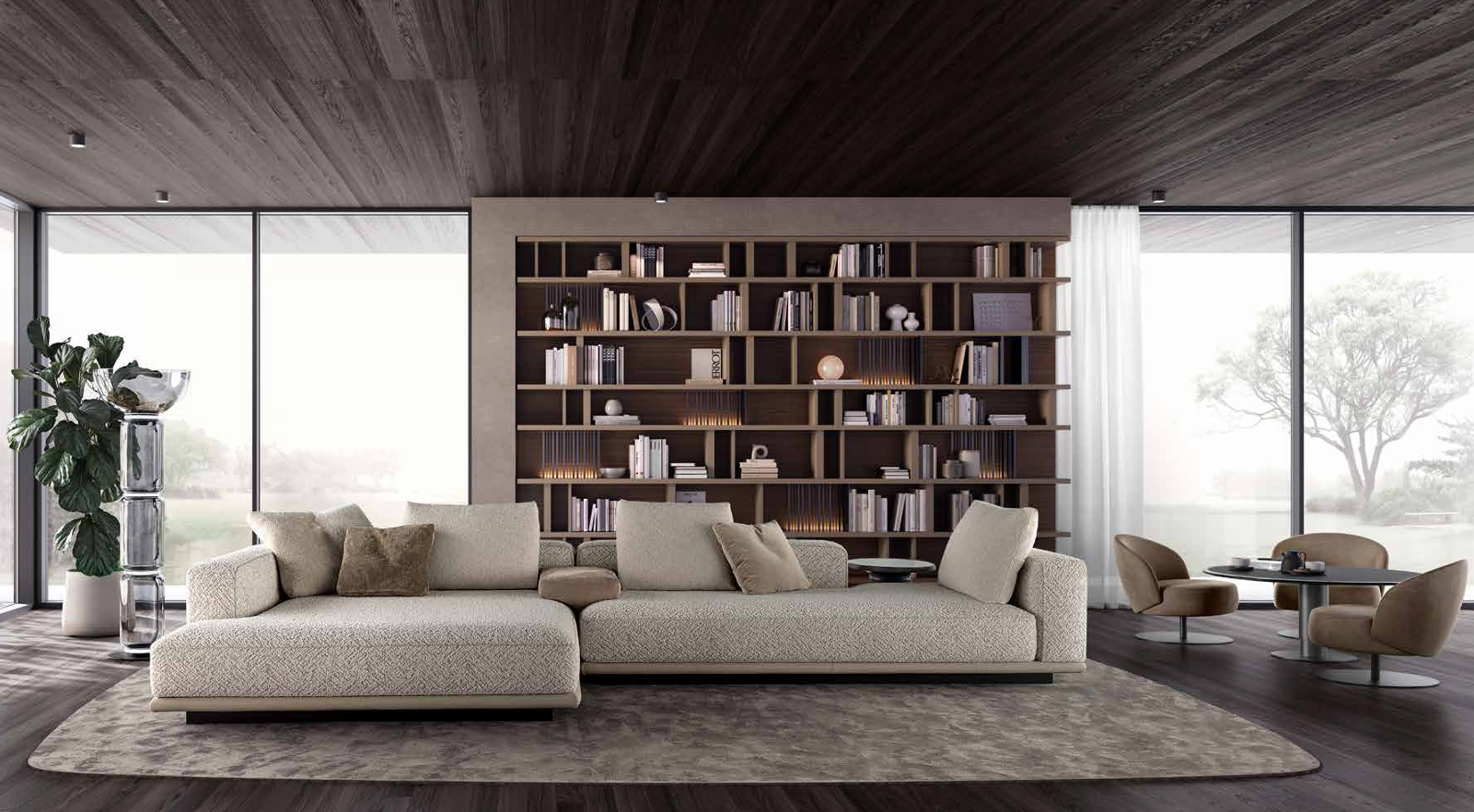 Clean lines, high design flexibility and timeless elegance define Skyline sofa - a seating system that unfolds to a thin and airy panel base. Backs, armrests and complementary items combine to form multiple configurations and the ideal relaxation spot.