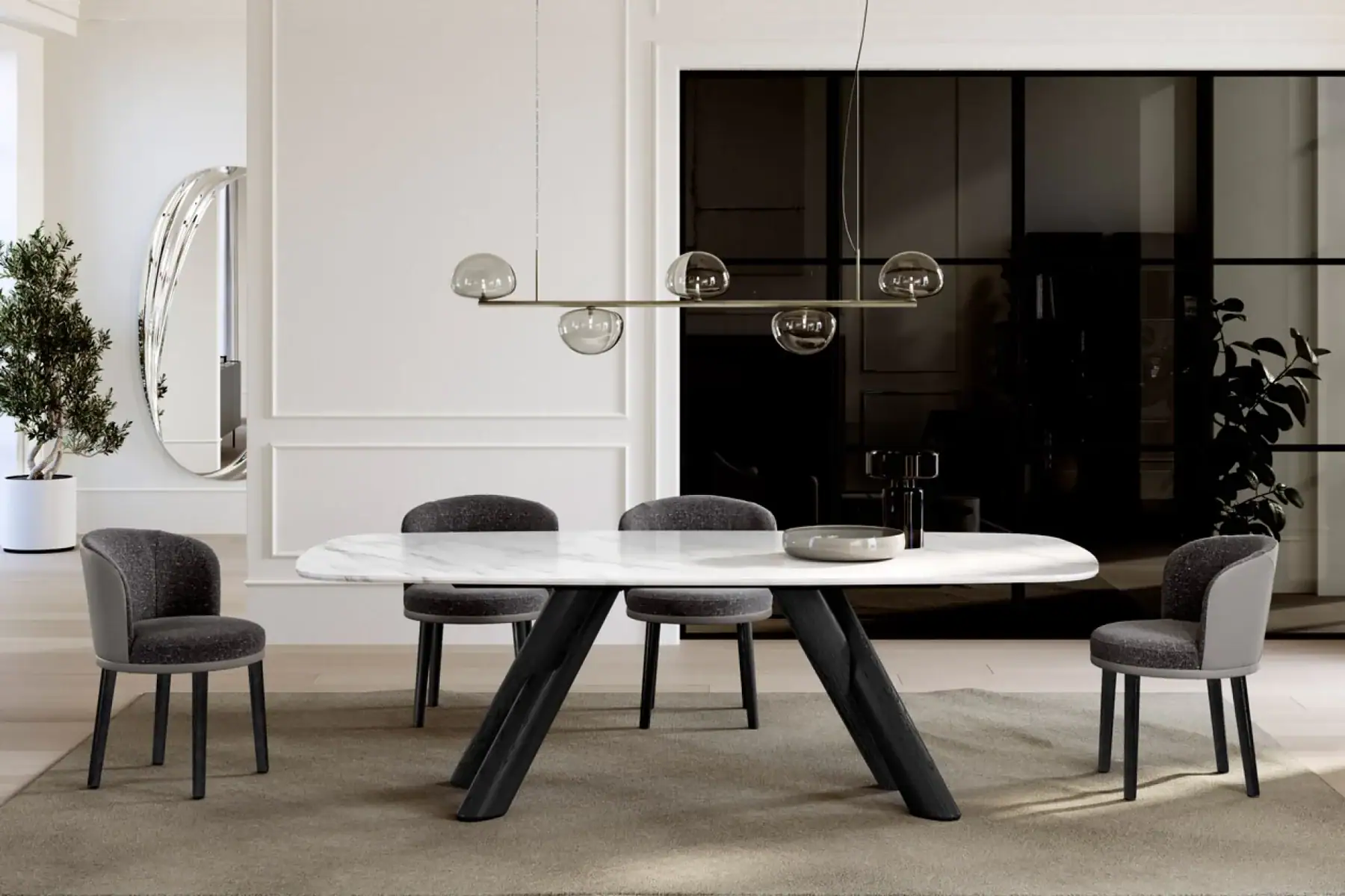 Με κομψό σχεδιασμό, το Dew διαθέτει καπνιστές αποχρώσεις από βοριοπυριτικό γυαλί και μεταλλική δομή σε φινίρισμα βουρτσισμένης πλατίνας ή βουρτσισμένου χρυσού.