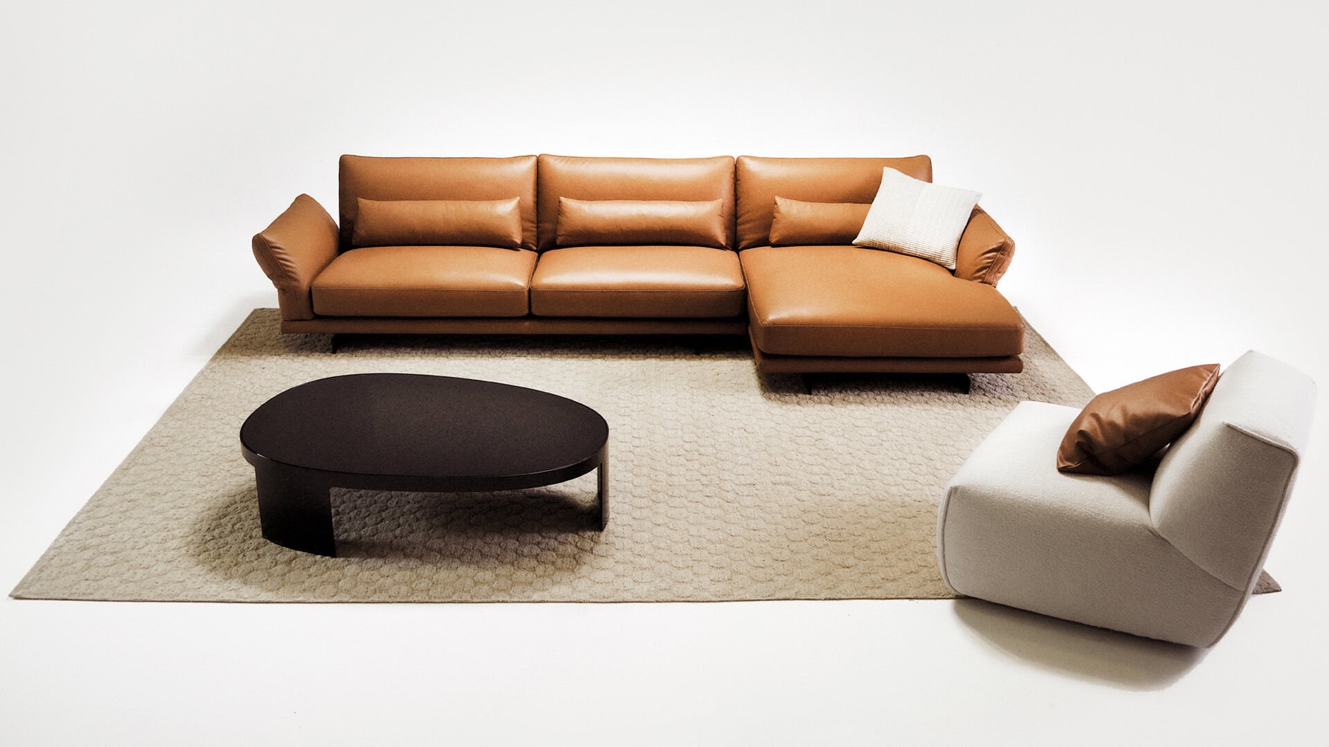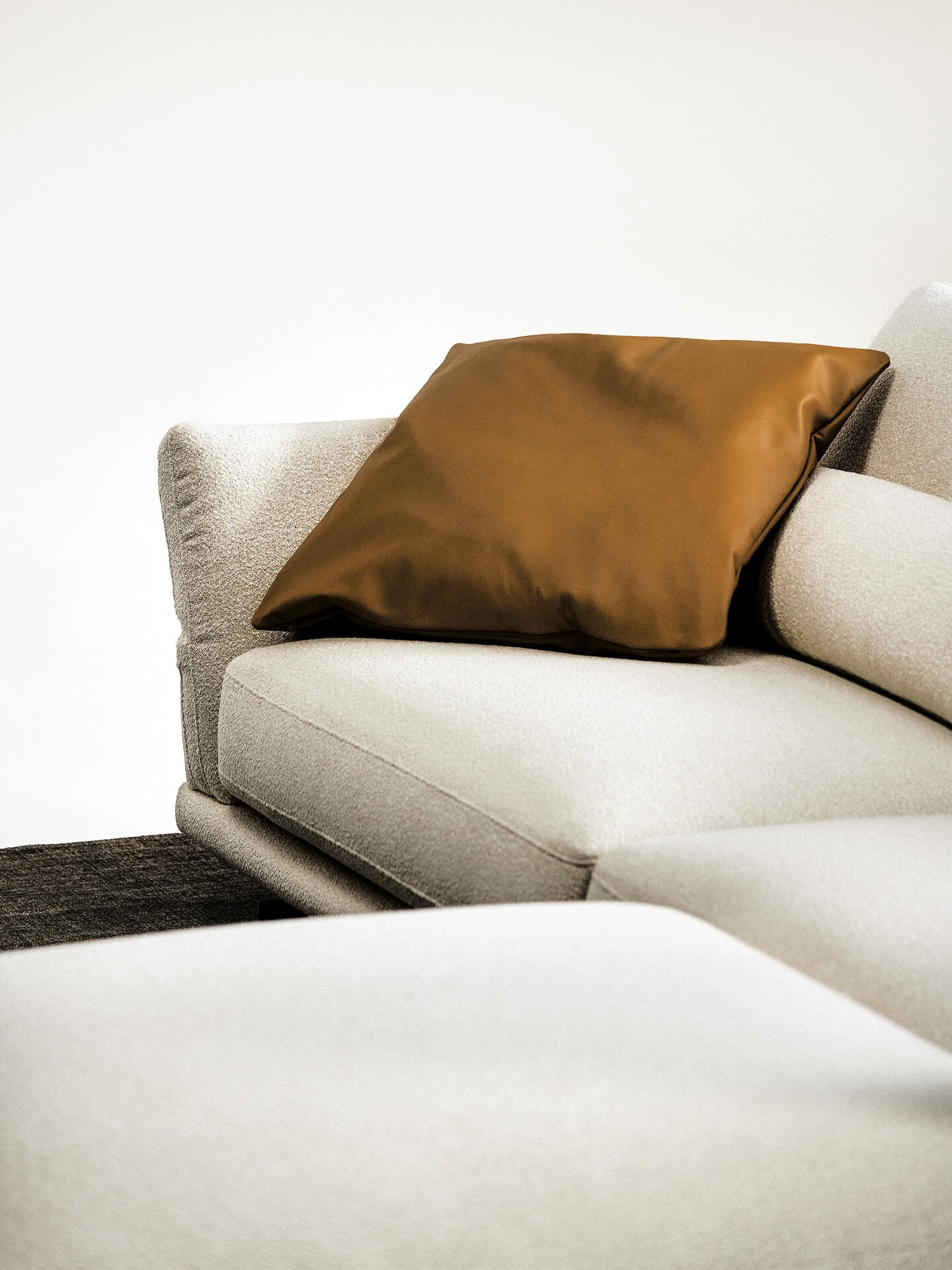 Ένας άνετος και αναλογικός αρθρωτός καναπές με ανοιχτή βάση και ρυθμιζόμενο μηχανισμό τόσο στα υποβραχιόνια όσο και στα μαξιλάρια πλάτης για μια πραγματική «προσαρμοσμένη» άνεση.