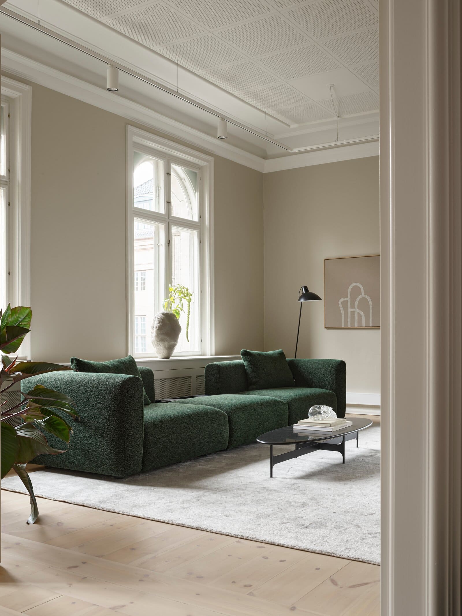 Αυτή η ευέλικτη συλλογή, που σχεδιάστηκε από τον Lars Wendelbo, περιλαμβάνει 19 αρθρωτές μονάδες, επιτρέποντας δυναμικές διαμορφώσεις. Δύο διαγώνιες μονάδες προσθέτουν ίντριγκα στις διατάξεις, ενώ οι μονάδες με δίσκους - διαθέσιμες σε μαύρο βαμμένο, σκούρο καφέ βαμμένο ή ανοιχτό καπλαμά δρυός, που ολοκληρώνεται με μαρμάρινη πλάκα Pietra Grey - συνδυάζουν τη λειτουργικότητα με την κομψότητα. Οι ενσωματωμένες πρίζες USB ενισχύουν περαιτέρω την ευκολία, εξασφαλίζοντας την αβίαστη φόρτιση συσκευών ή τον ατμοσφαιρικό φωτισμό.
