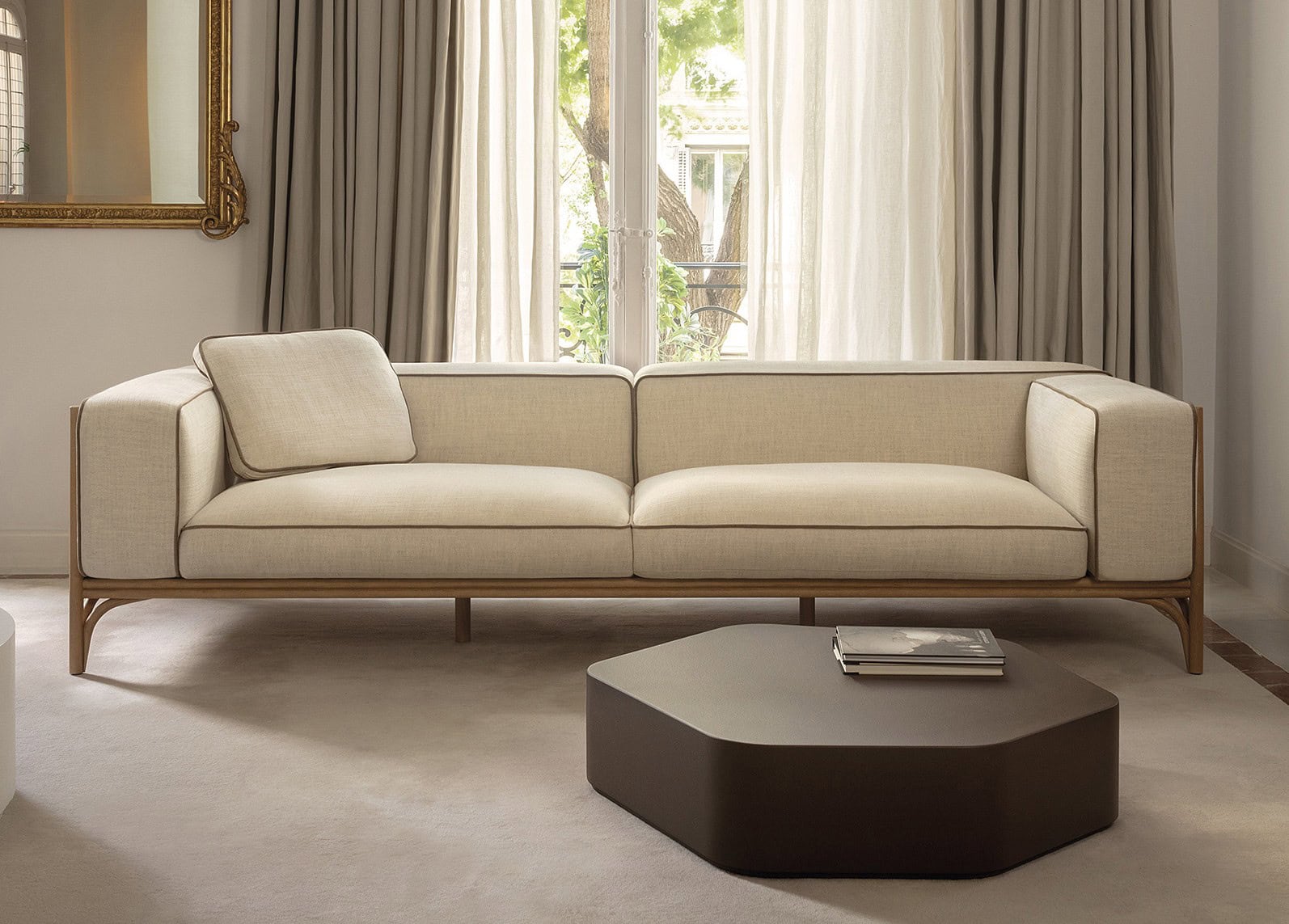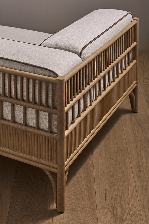 Καναπές με σκελετό από αποφλοιωμένο και βαμμένο φυσικό ρατάν διαμέτρου 32 mm/1,26”. Πλάτη και πλαϊνά από αποφλοιωμένο και βαμμένο φυσικό ρατάν διαμέτρου 10 mm/0,4”.