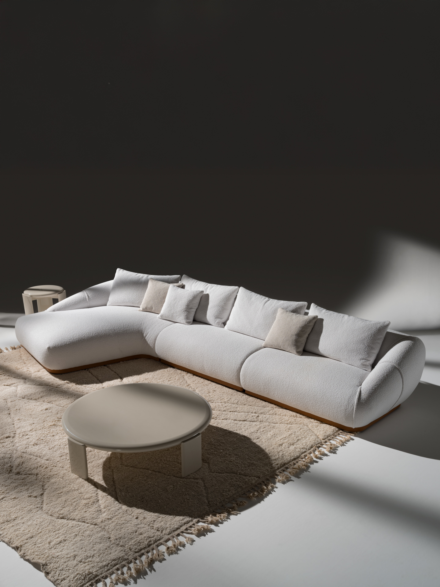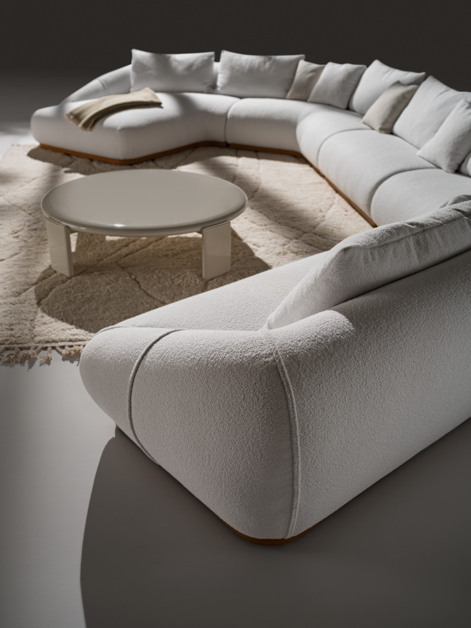 Απαλές γραμμές και γενναιόδωροι όγκοι δίνουν ζωή στο Manila, ένα αρθρωτό καναπέ με εκλεπτυσμένη σκηνική παρουσία. Η καμπύλη δομή δημιουργεί μια αίσθηση αγκαλιάς και φιλικότητας, ενώ η ξύλινη βάση προσδίδει ζεστασιά και ελαφρότητα.