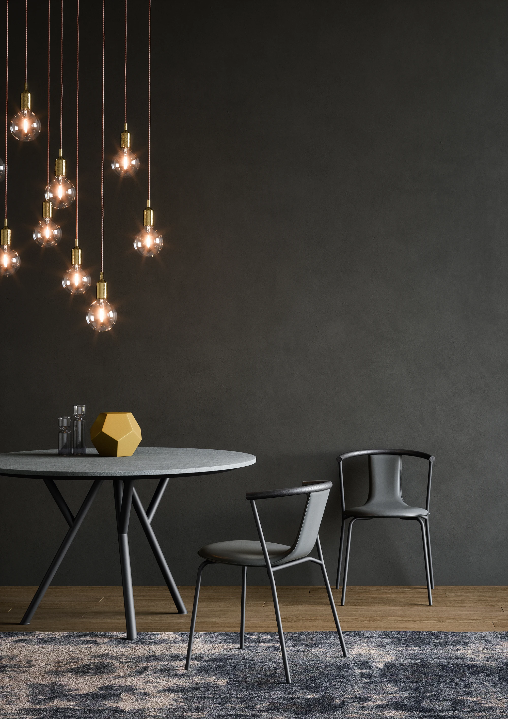 Με λεπτό σωληνωτό σκελετό και καμπυλωτή πλάτη που ενώνεται με το κάθισμα σε μια ομαλή, συνεχή γραμμή, το Agel, σχεδιασμένο από το στούντιο e-ggs, εκπέμπει έναν αέρα συμπαγούς ελαφρότητας.