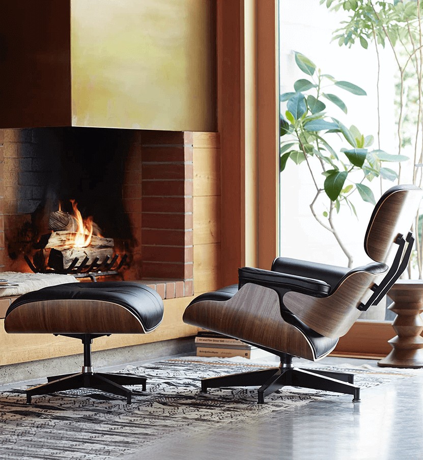 Ένα από τα πιο επιδραστικά κομμάτια στην ιστορία του μοντέρνου design, η πολυθρόνα Lounge Chair σχεδιάστηκε από τους Charles & Ray Eames, το 1956. Αφετηρία έμπνευσης ήταν οι παλιές πολυθρόνες που φιλοξενούσαν οι αγγλικές λέσχες. Η διαδικασία σχεδιασμού και τα πειράματα των Eames στην χύτευση του ξύλου διήρκεσαν αρκετά χρόνια∙ το αποτέλεσμα ήταν μια σπουδαία πολυθρόνα, που σήμερα φιλοξενείται στο Μουσείο Μοντέρνας Τέχνης της Νέας Υόρκης.