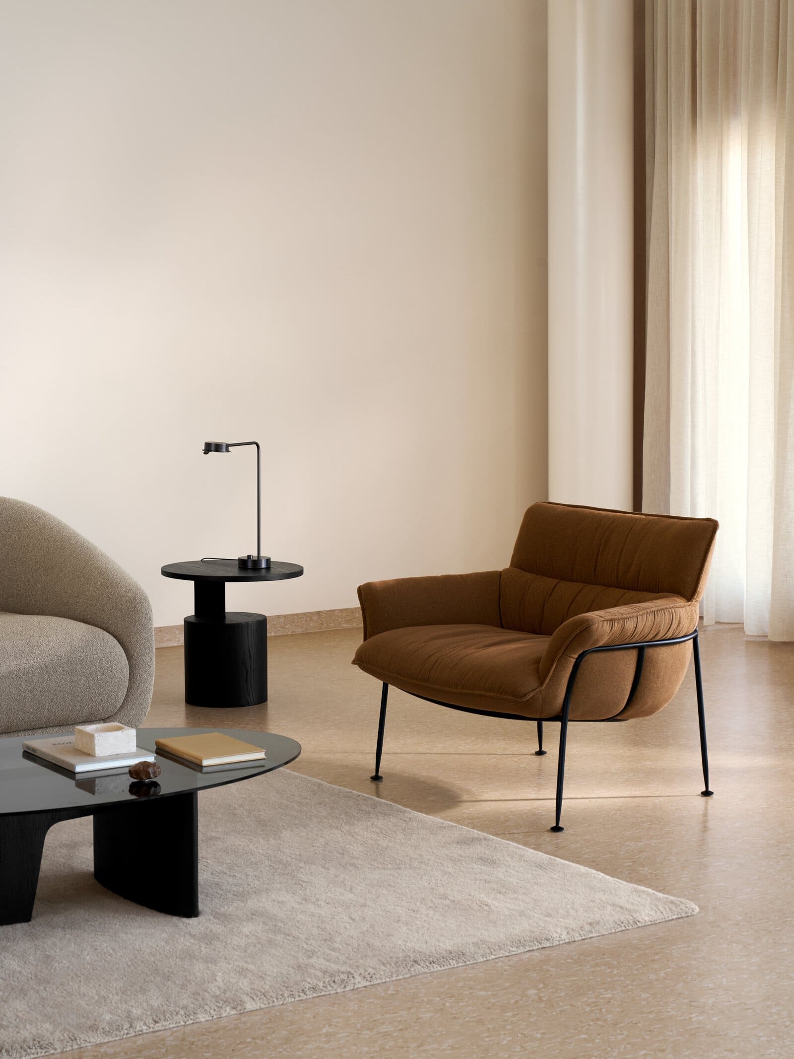 Κατασκευασμένο σε μαύρο ή σκούρο καφέ βαμμένο καπλαμά δρυός, αυτό το κομμάτι προσφέρει ένα εντυπωσιακό προφίλ που εναρμονίζεται άψογα με το ήθος της μοντέρνας κομψότητας της Wendelbo.