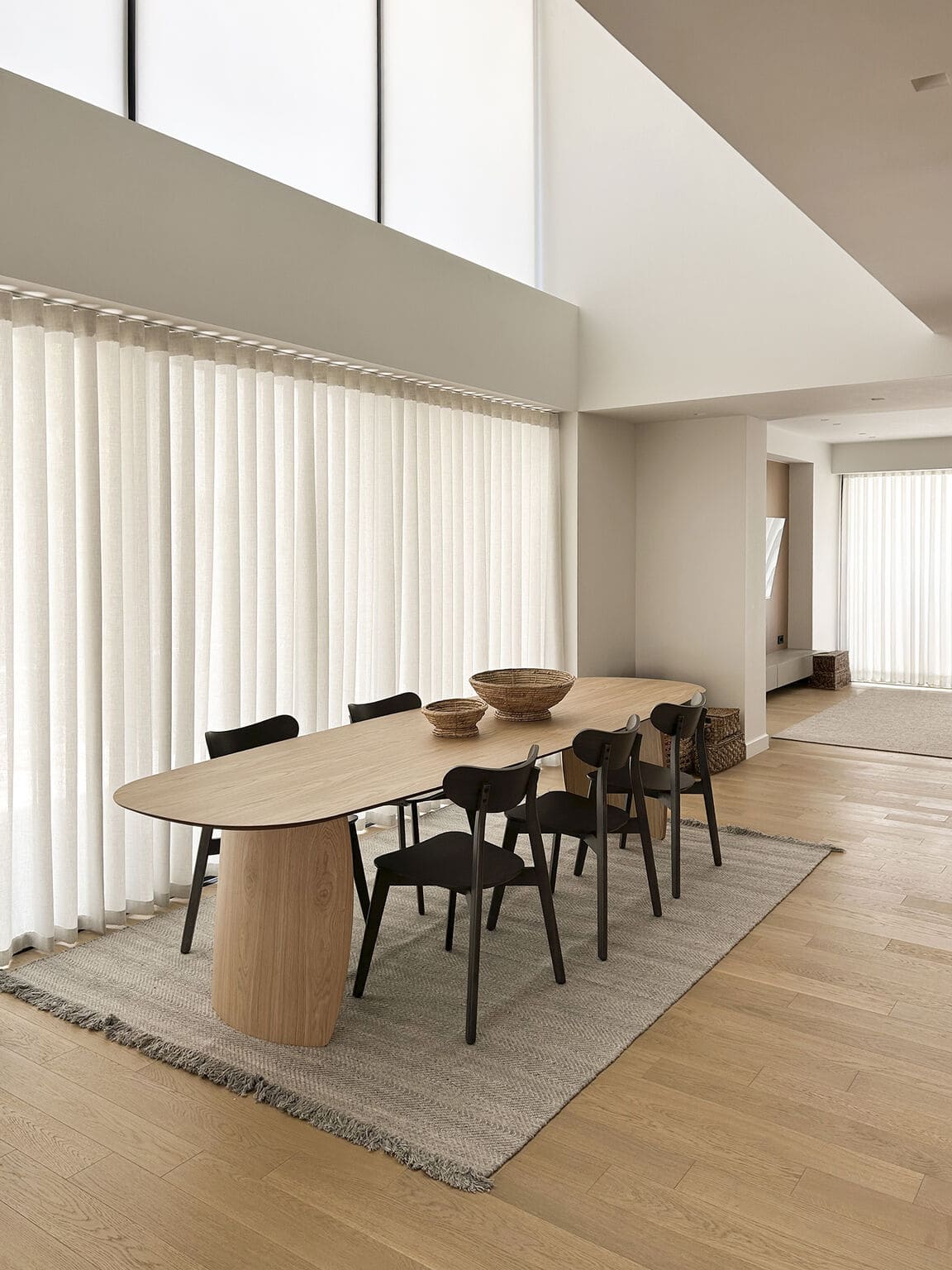 Φινιρίσματα: δρυς, καρυδιά & ζεστό γκρι. Οβάλ μεγέθη, με δύο πόδια πετάλων: 100 x 200, 100 x 240 cm Στρογγυλό μέγεθος, με τρία μικρότερα πόδια πετάλου: Ø 120 cm
