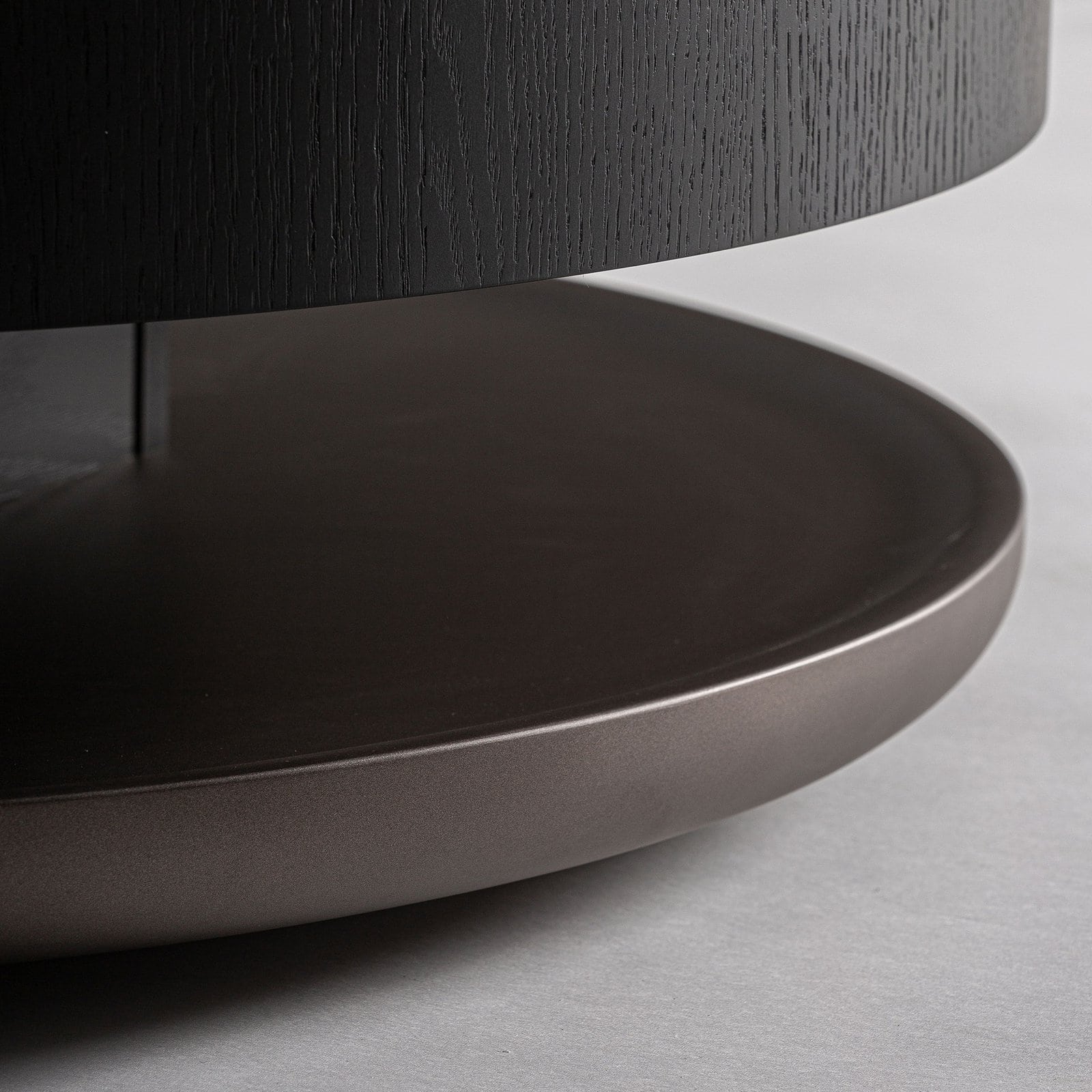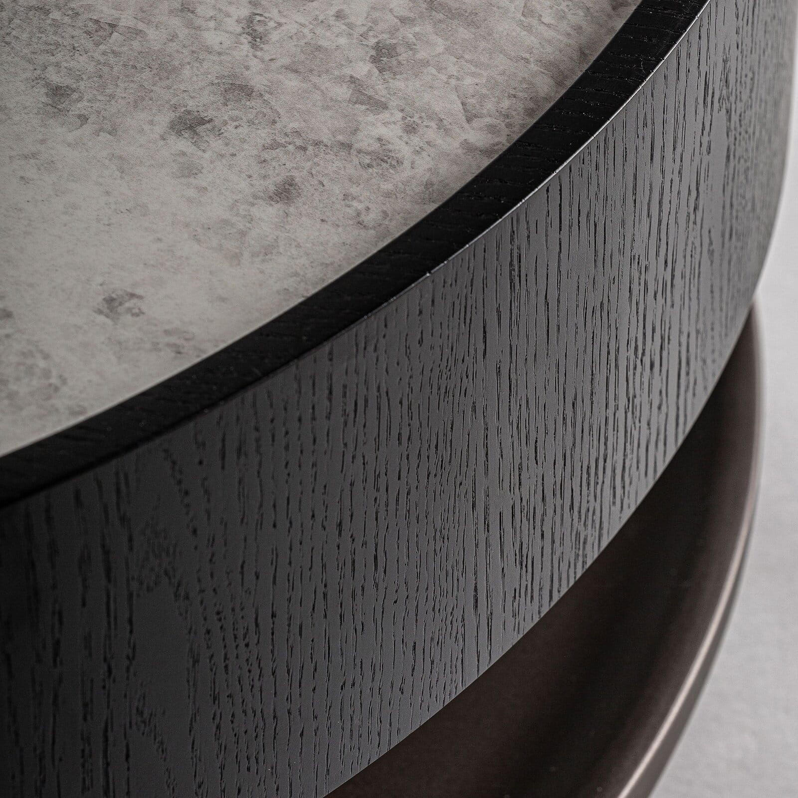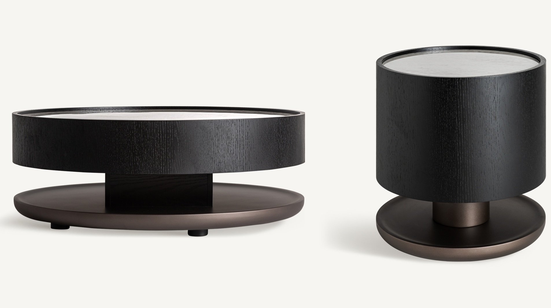 Η μαύρη δρύινη κατασκευή και η λευκή κεραμική επιφάνεια δημιουργούν μια κομψή αντίθεση, ιδανική για σύγχρονους χώρους.