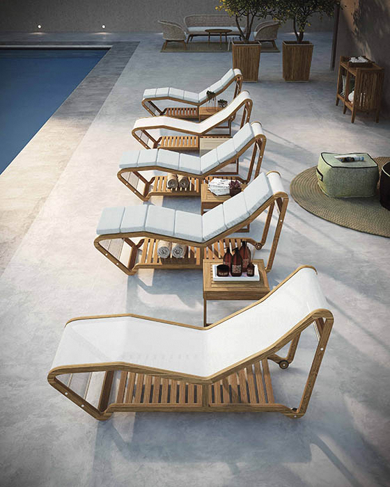 Η ξαπλώστρα Infinity, με γραμμή προφίλ εμπνευσμένη από το σύμβολο του απείρου, αντανακλά την απέραντη φαντασία των σχεδιαστών του Atmosphera Creative Lab.